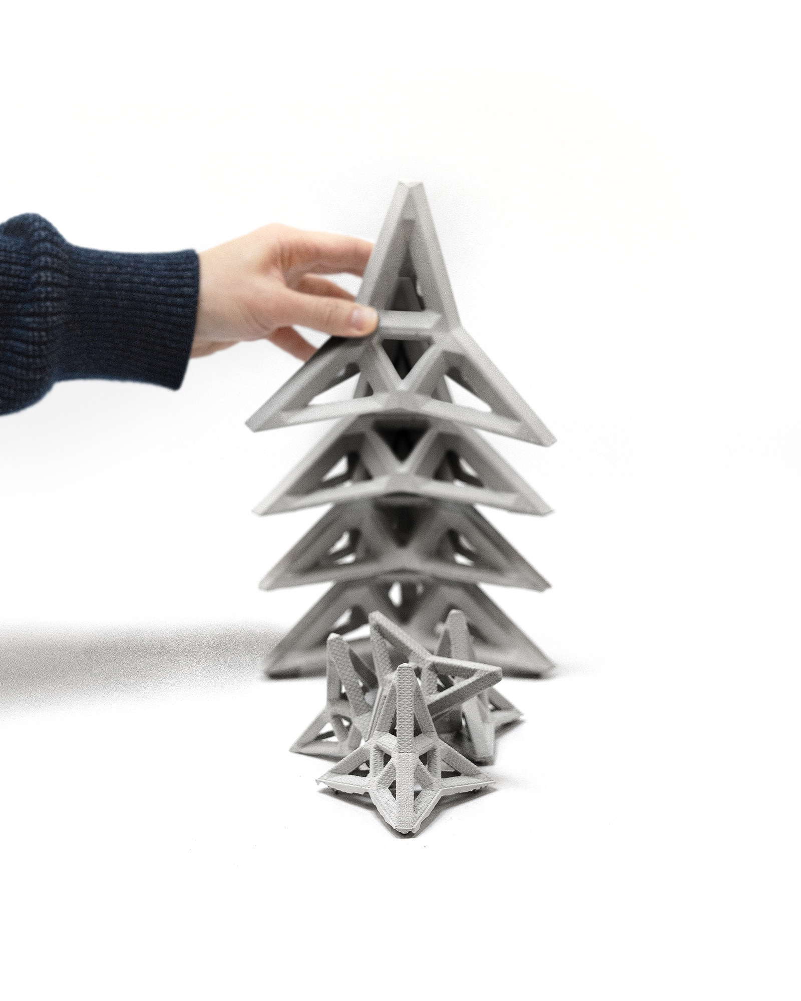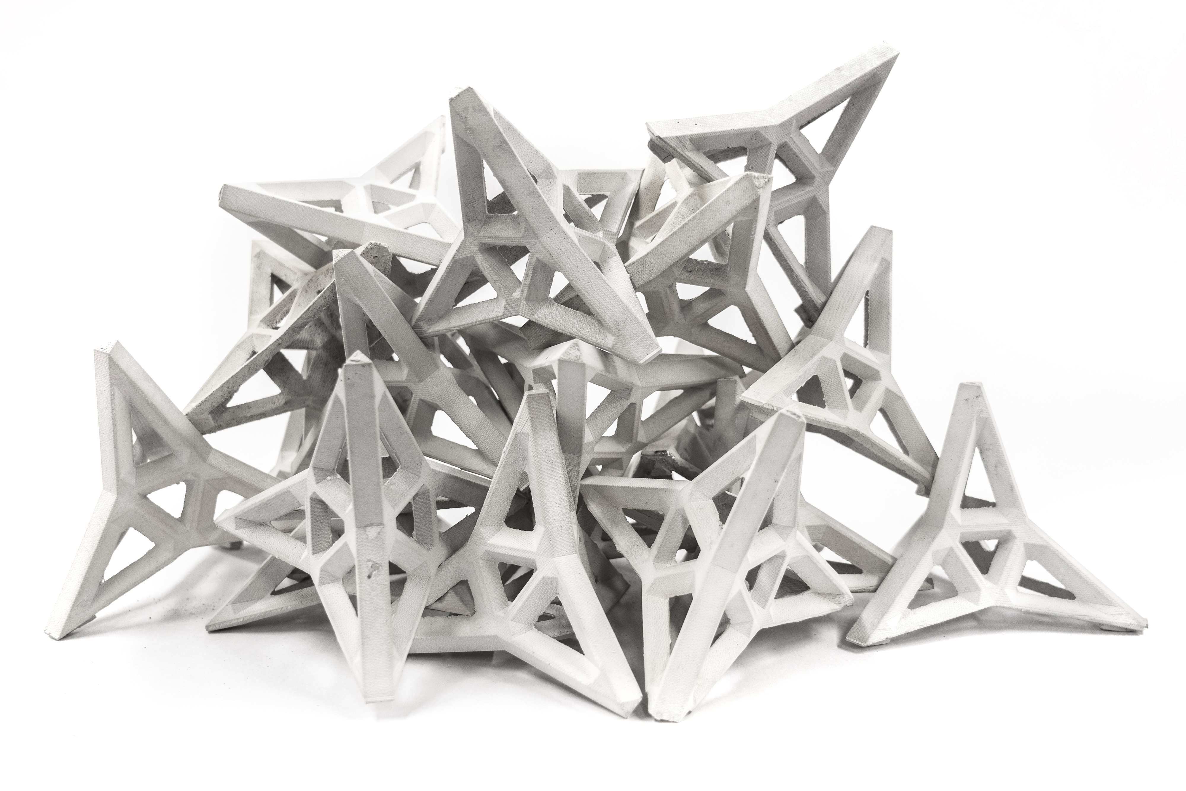 Regarding hydrodynamic performance, the integration of voids into the refined tetrapods, combined with a leaner structure and sharper tips, amplifies the capability for jamming and interlocking upon deployment. This enhancement fosters greater porosity within the structure, thereby bolstering stability and promoting a more resilient and interconnected arrangement of tetrapods.