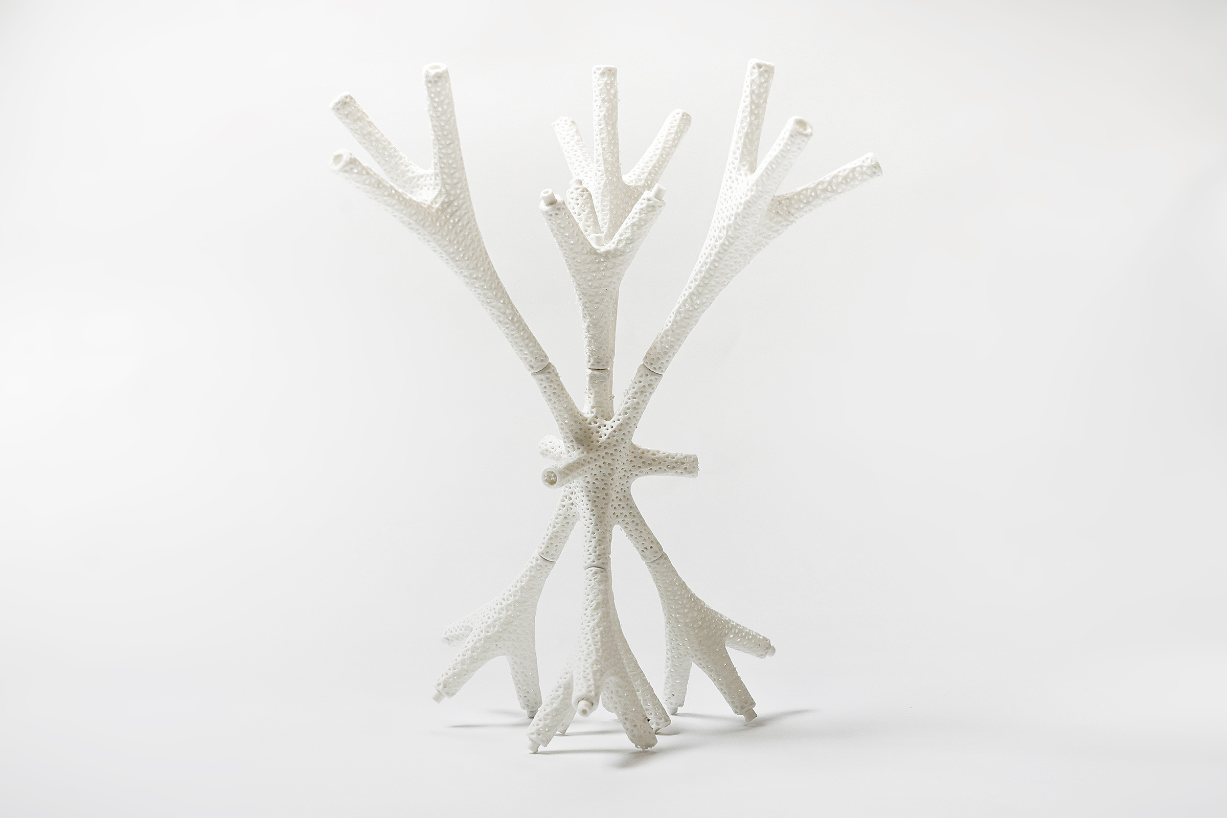A 3D printed PLA model demonstrates modules assembly to form a staghorn-coral-inspired structure